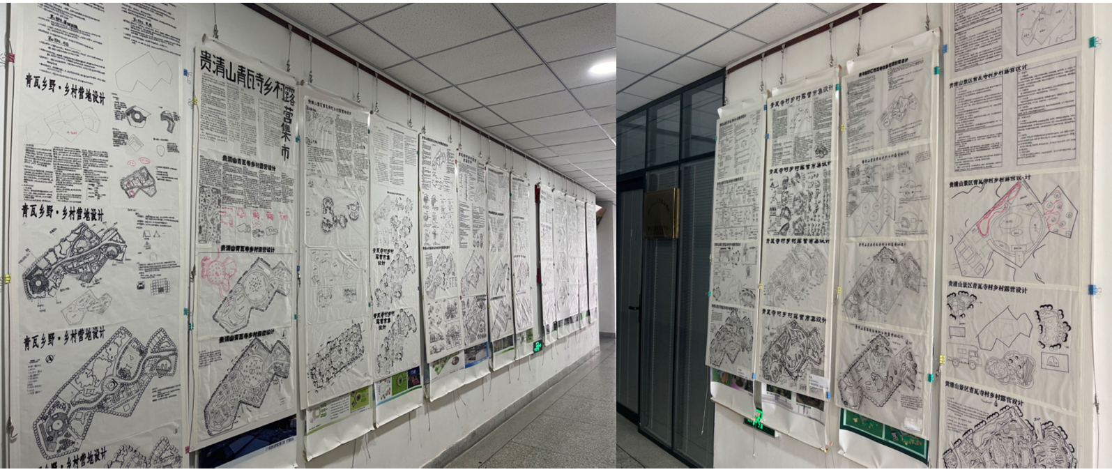 “纸上得来终觉浅,绝知此事要躬行”,学习旅游景观设计理论知识是对后续实践应用设计的铺垫。在进行一系列先导训练后,学生们从文化演绎角度出发深入查找关于彰县的历史文化、旅游资源、客源市场等特点,并进行了资源分析、区位分析、交通分析、发展条件分析和主题定位。大家集思广益,将所学理论知识和手绘训练结果相结合完成不同主题乡村露营地设计方案。在这个过程中,学生们不仅学会了如何将自然与文化、历史与现代元素融入到旅游景观设计中来,还学会了如何将所学理论知识应用于实际规划设计工作中,获得了在实践中不断修正和完善自己设计成果的经验。