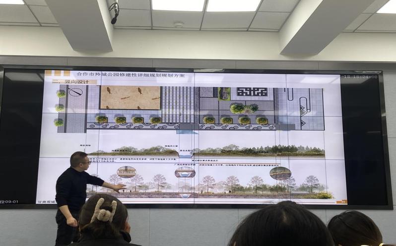 图1:任课教师讲解甘南州合作市羚城公园设计实际案例