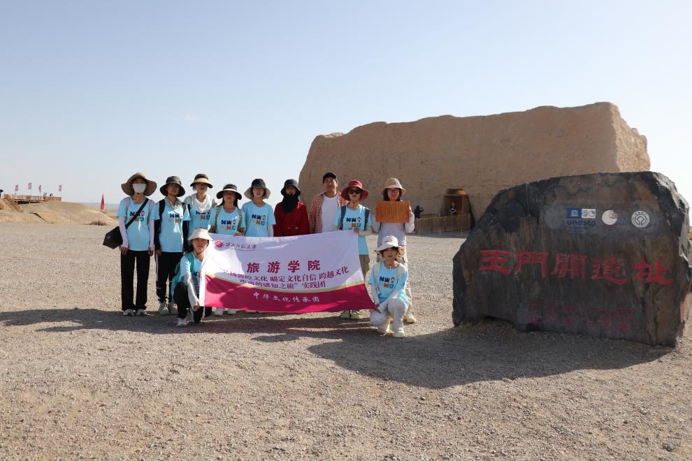 随着实践调研的有序开展,实践团队来到了阳关。这座历史悠久的关隘,见证了无数商旅的往来与文化的交流。站在阳关之上,感受到那份穿越时空的商贸繁荣与文化碰撞。阳关不仅是一处地理上的要塞,更是中华文化开放包容、交流互鉴的生动写照。在这里,他们深刻体会到了中华文化的博大精深与包容性。