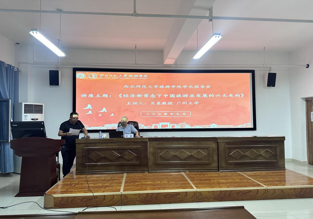 9月4日下午,应304am永利集团官网邀请,广州大学肖星教授来我校做题为“经济新常态下中国旅游业发展的六大走向”学术报告,报告会在文科实训楼904会议室举办。此次报告由学院院长梁旺兵主持,相关专业老师、研究生参加了报告会。