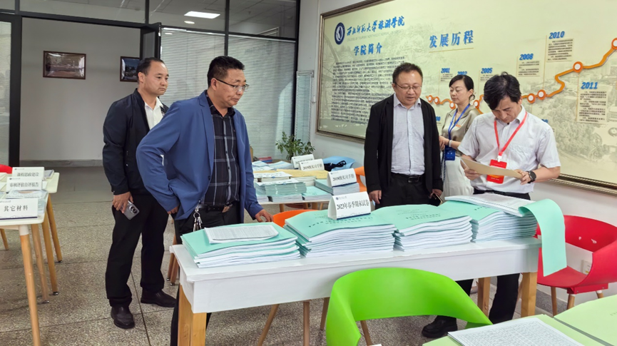 陈新兵副校长率工作组对学院审核评估自评报告、本科教育教学与人才培养典型案例、本科教育教学管理规章制度、教学运行机制和学术型人才培养体系、各类教学文档、实习实践基地建设、课程教学综合改革及信息化建设、教师课堂教学能力提升、学院教学督导队伍建设、办学特色及育人成效等情况进行细致入微地现场检查督导。梁旺兵院长、柴亚林副院长向工作组详尽介绍学院本科教学各方面工作及书面材料具体情况。