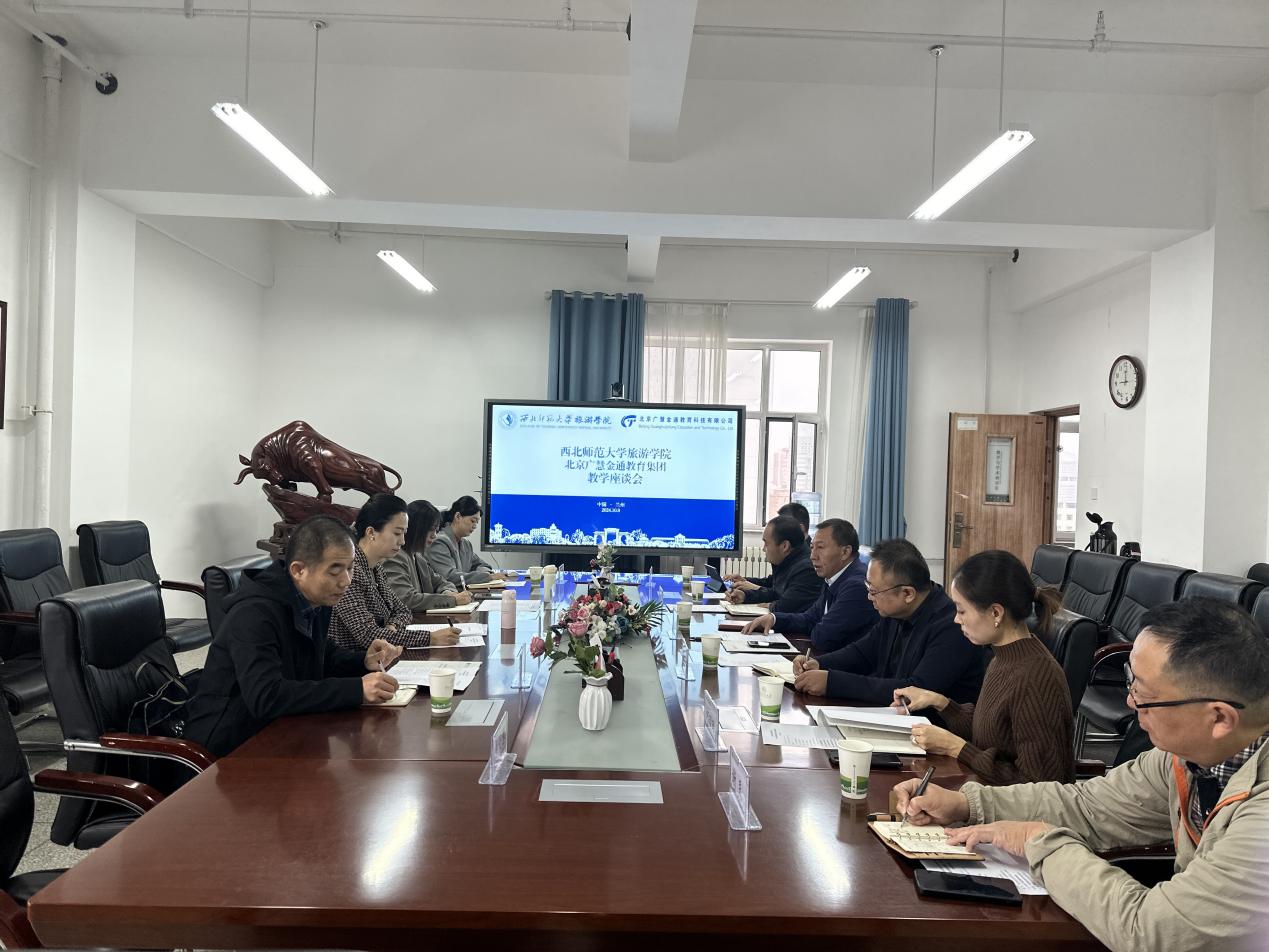 10月9日上午,北京广慧金通教育集团副总经理兼教学管理部经理李青谦一行到学院座谈交流。304am永利集团官网党委书记赵兴虎出席并主持会议。副院长柴亚林、武克军,党委副书记戴小武,航空服务艺术与管理系副主任何田田,教师谢民参加座谈。