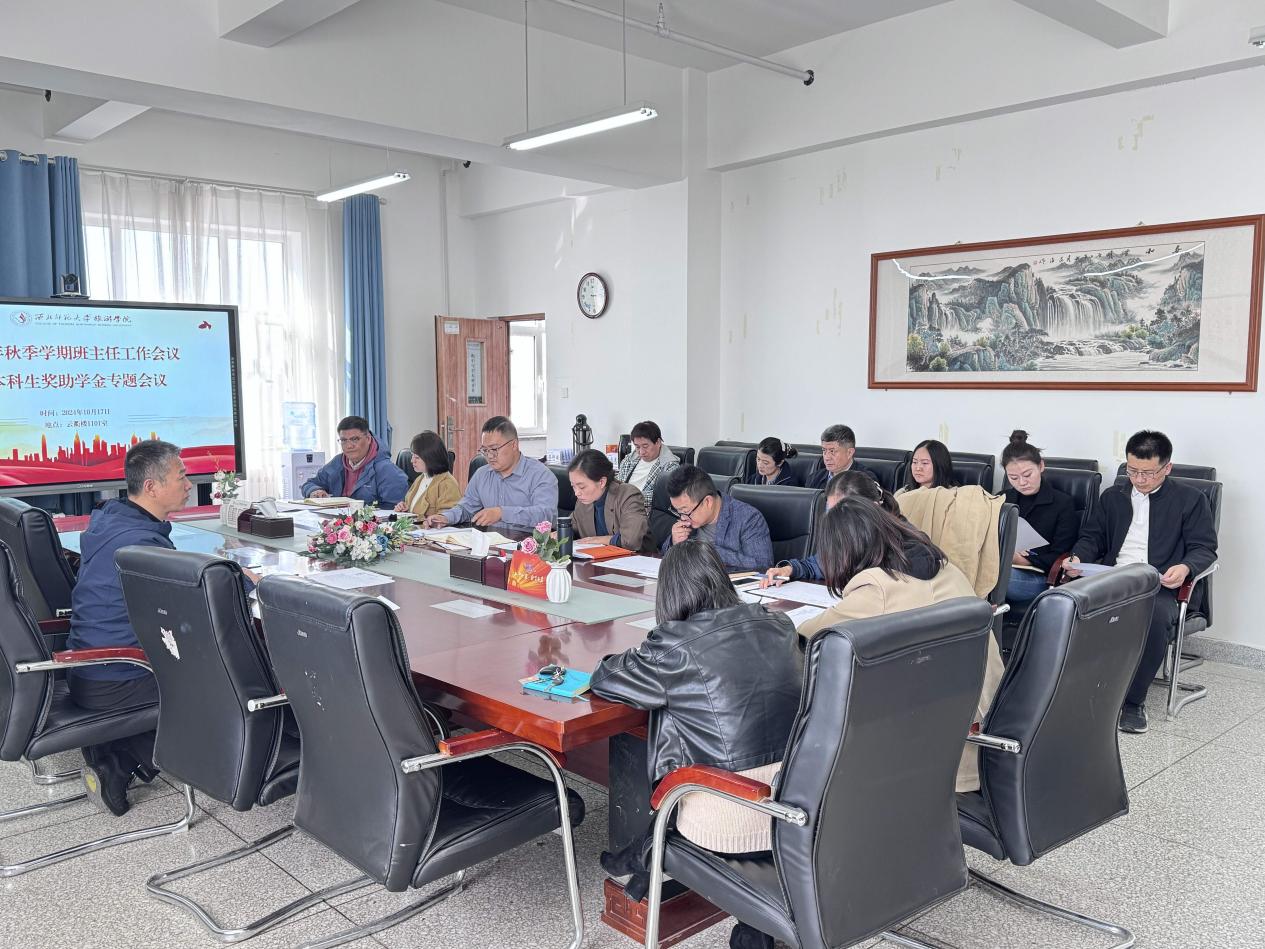 2024年10月17日,304am永利集团官网在云衢楼1101室召开2024年秋季学期班主任会议暨本科生奖助学金专题会议。全体本科生班主任和辅导员参会,学院党委副书记戴小武主持会议。